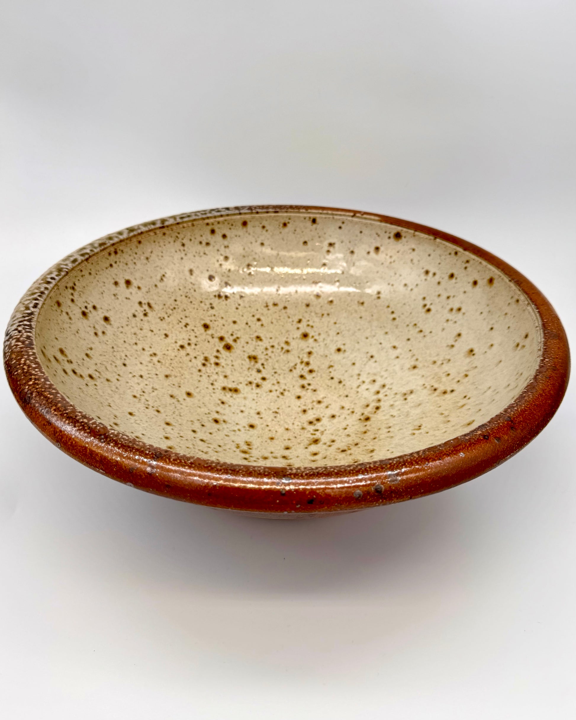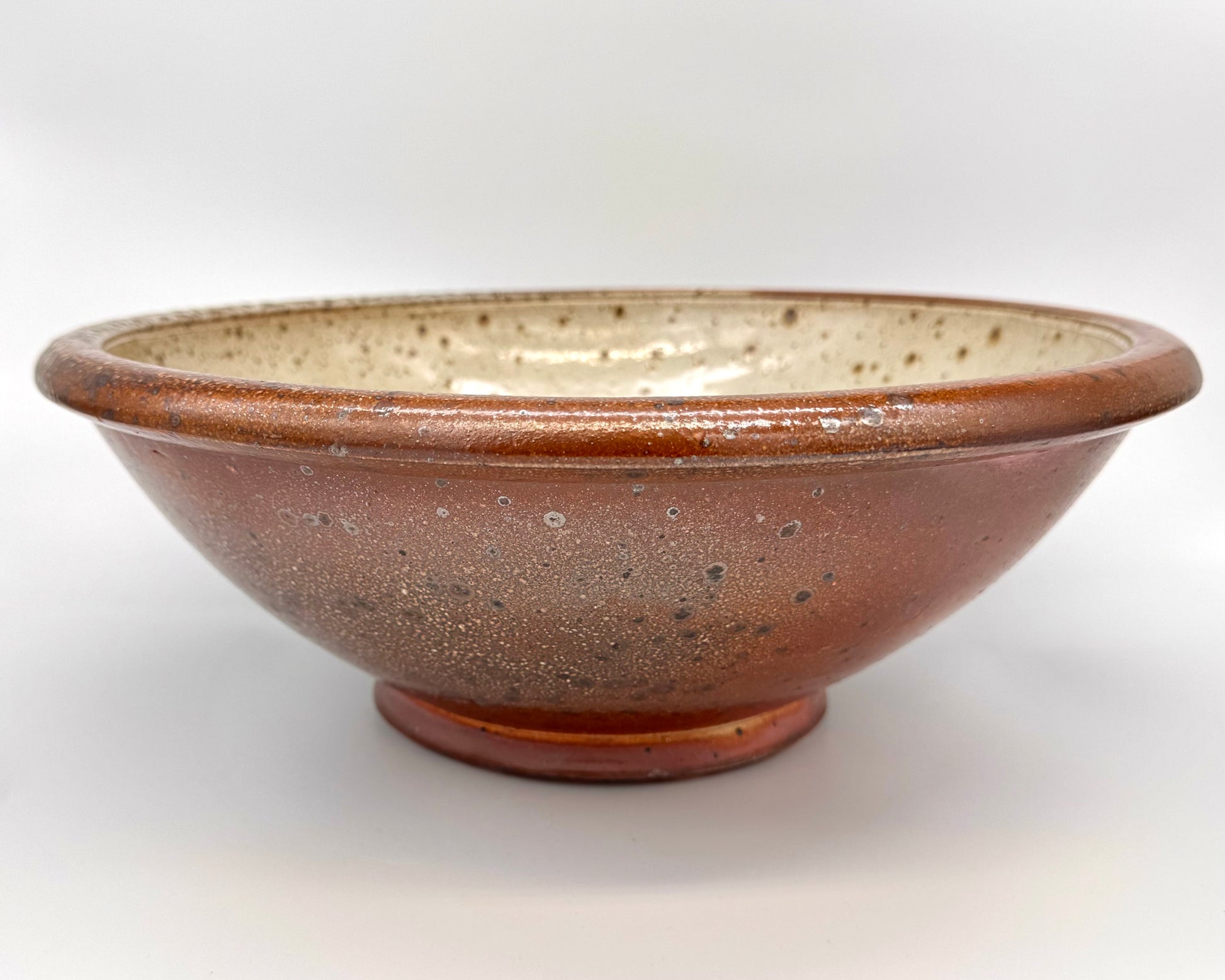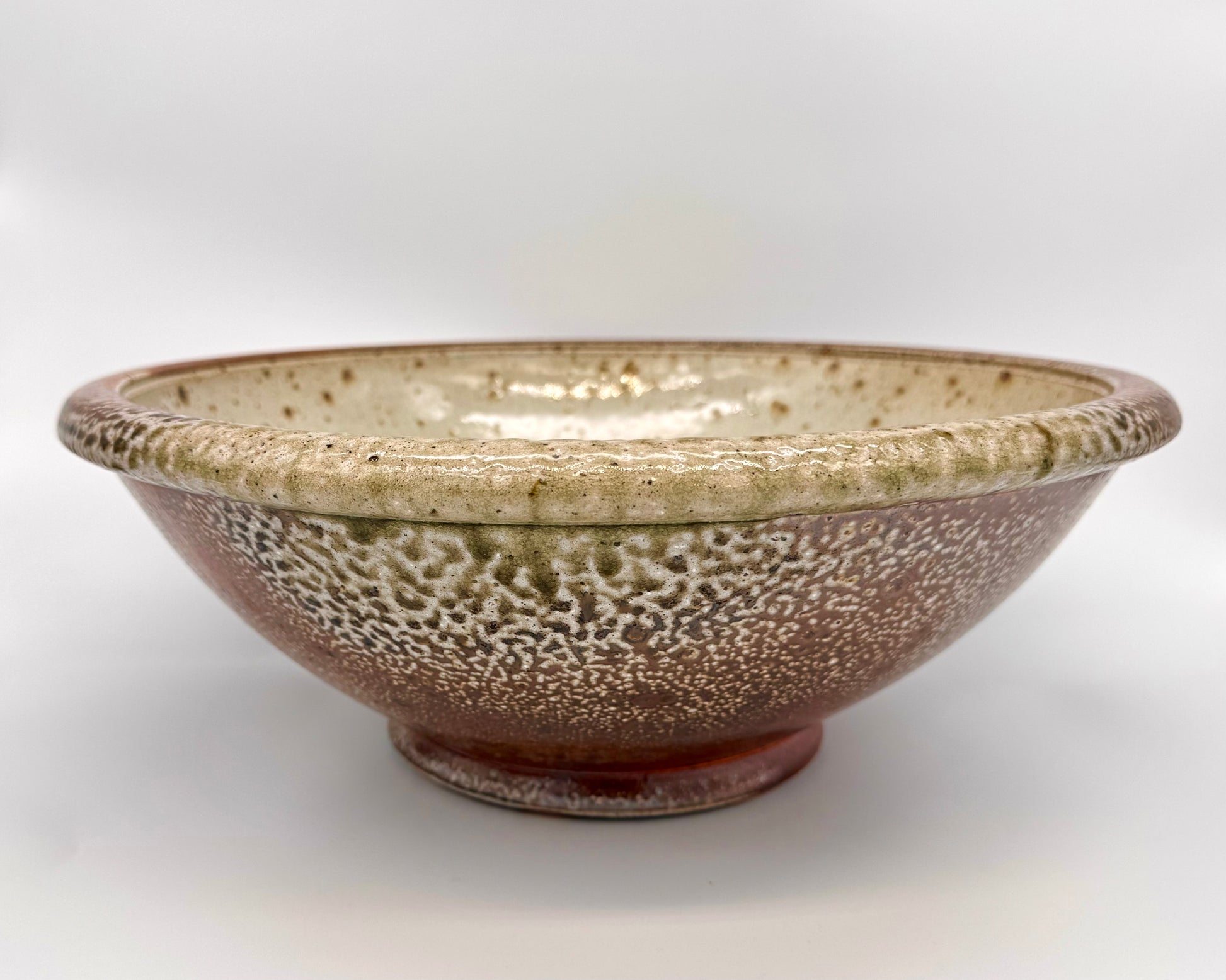 Large mixing bowl. Makes a good centerpiece. Great for mixing dough or as a fruit bowl. 35cm wide, 13cm height