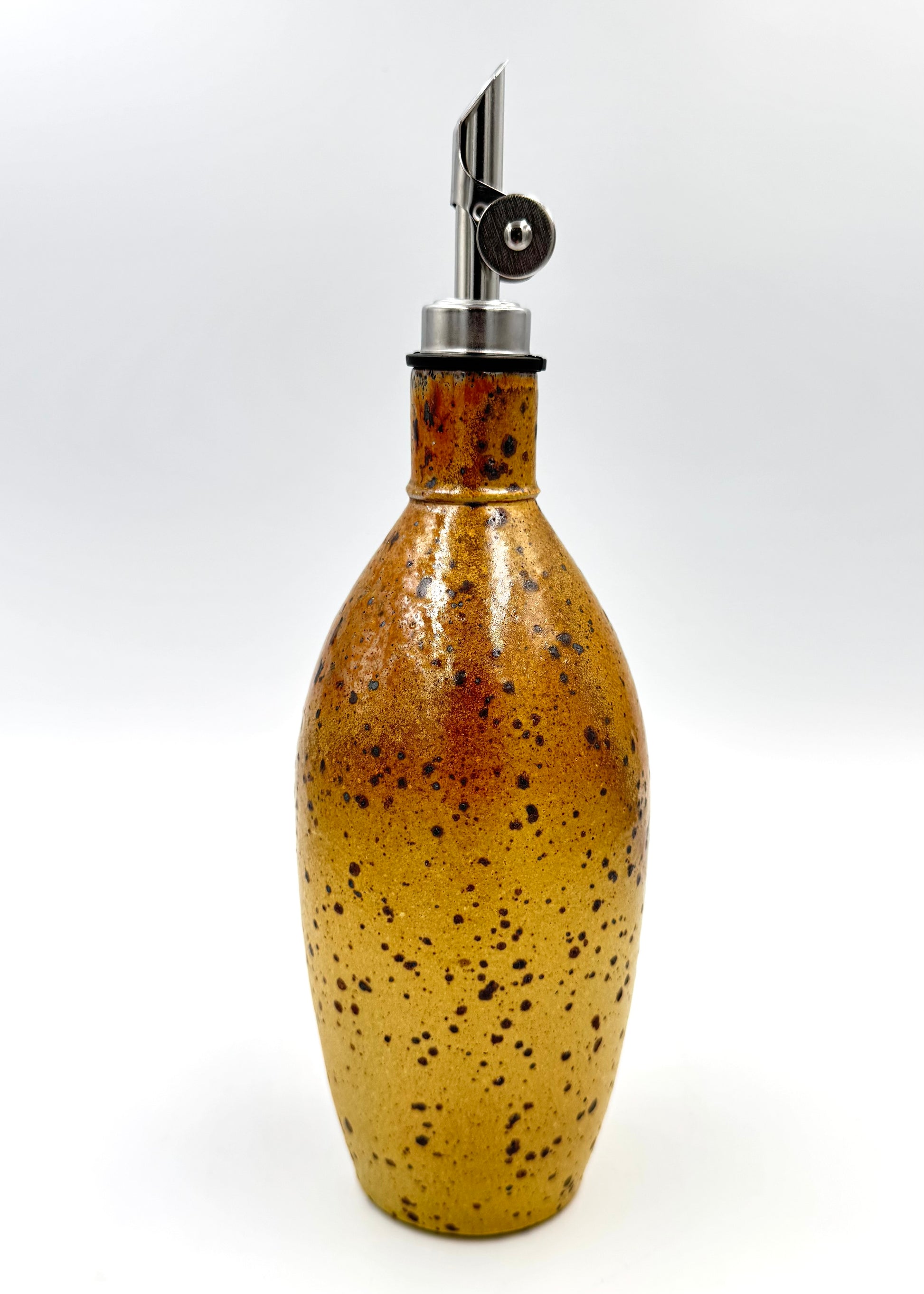 Cool and warm yellow tones with numerous dark flecks from locally crushed stone in the clay. Versatile and functional — these pourers also handle liquids less viscous than olive oil beautifully, such as gin, balsamic vinegar, and more.