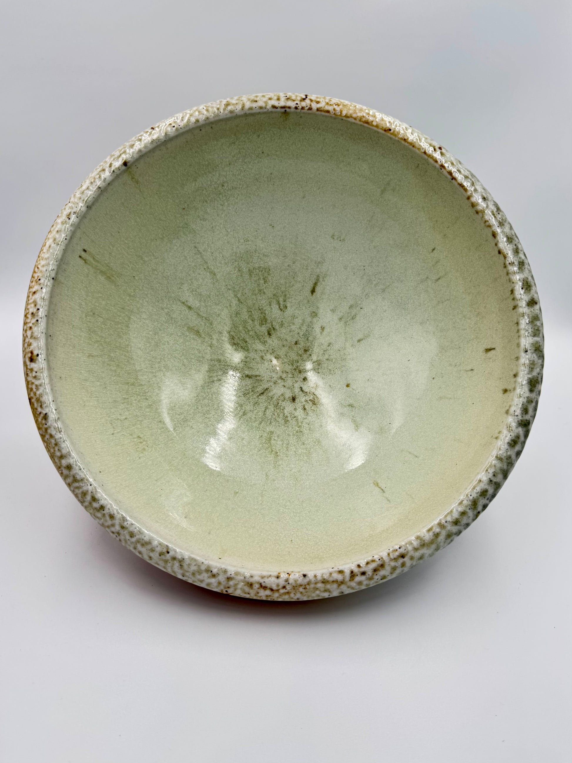 Medium mixing bowl. Dramatic warm red orange flashing and classic orange peal soda glaze deposits. I make this porcelain clay from local kaolin which is abundant around Scottsdale. Porcelain is a very hard and durable material. It doesn’t always have to be thin and delicate. This bowl is robust and should outlive civilization. 2.6L (10 cups) 28.7cm wide and 11.5cm tall.