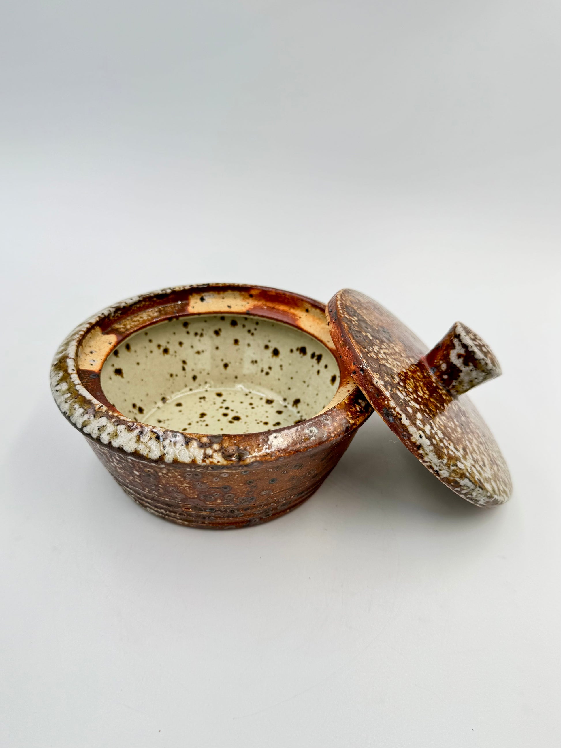 Lidded salt dish. A must-have by the stovetop and on the table.