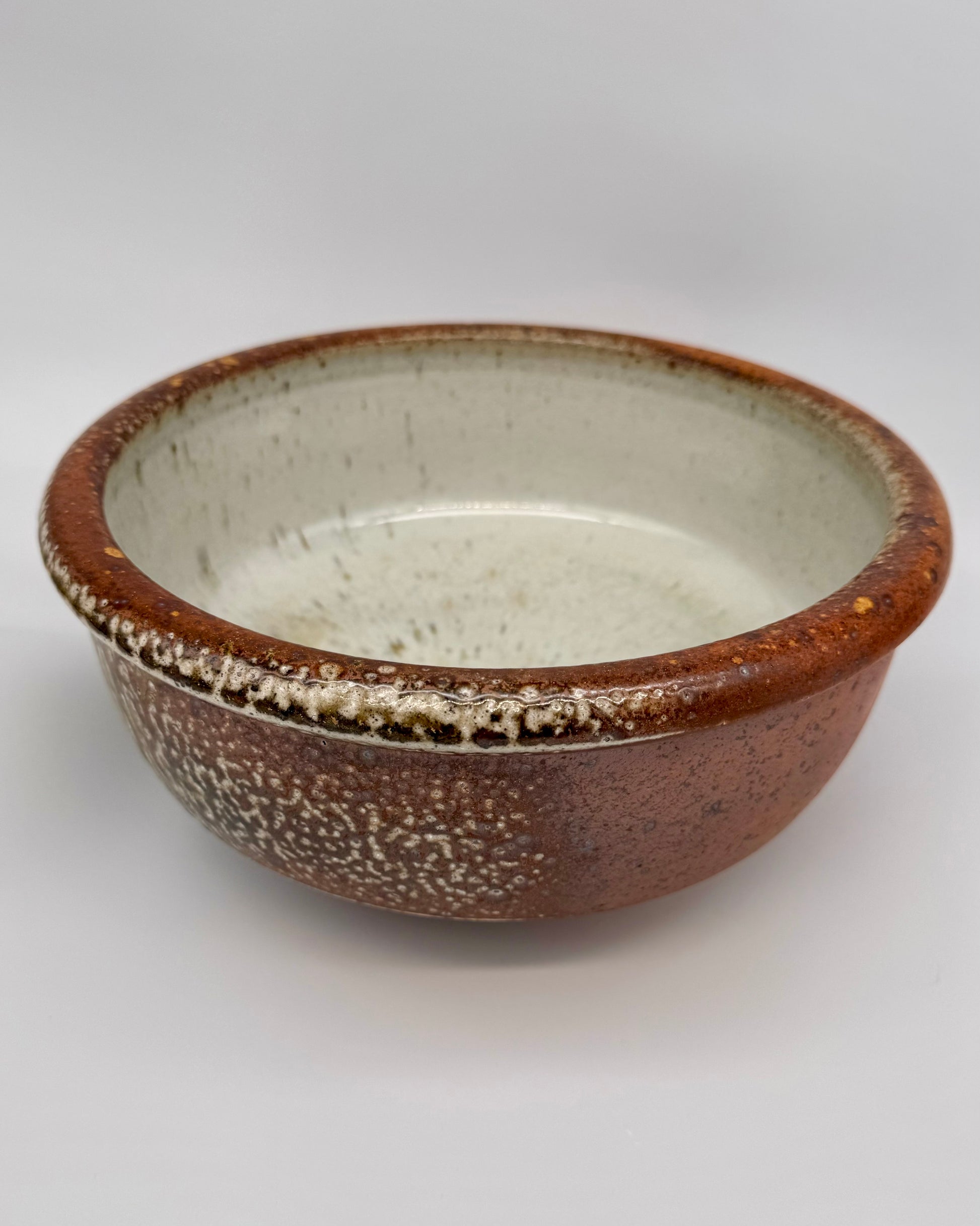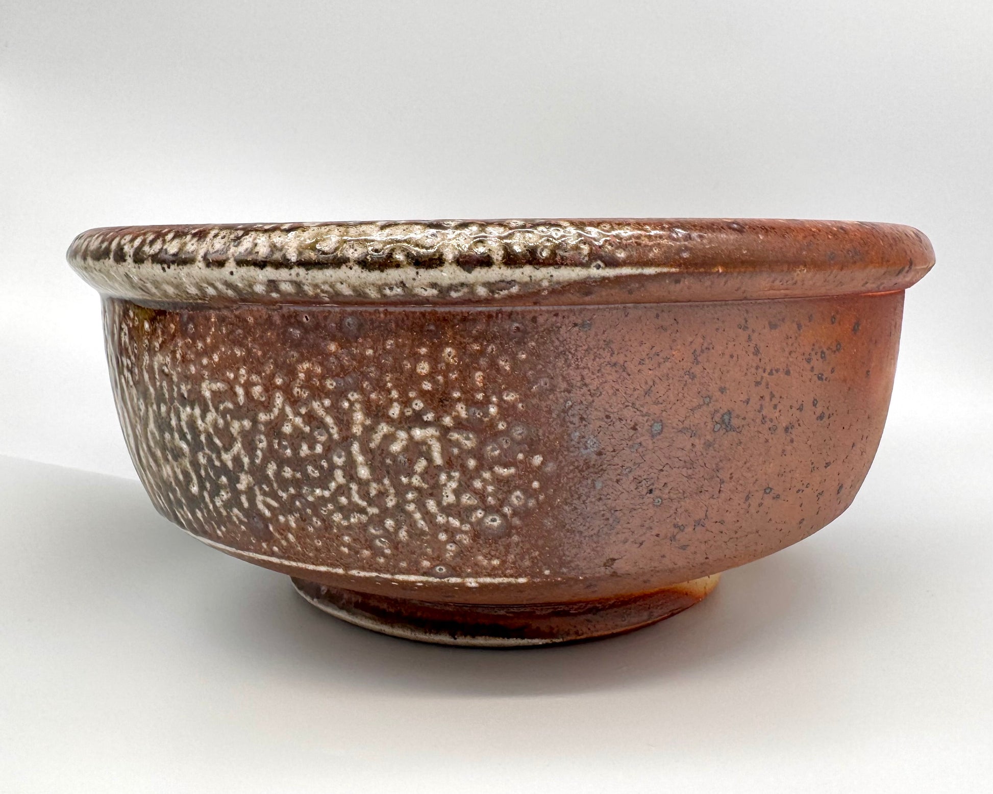 Large serving bowl. Generous soda glaze and ash deposits.