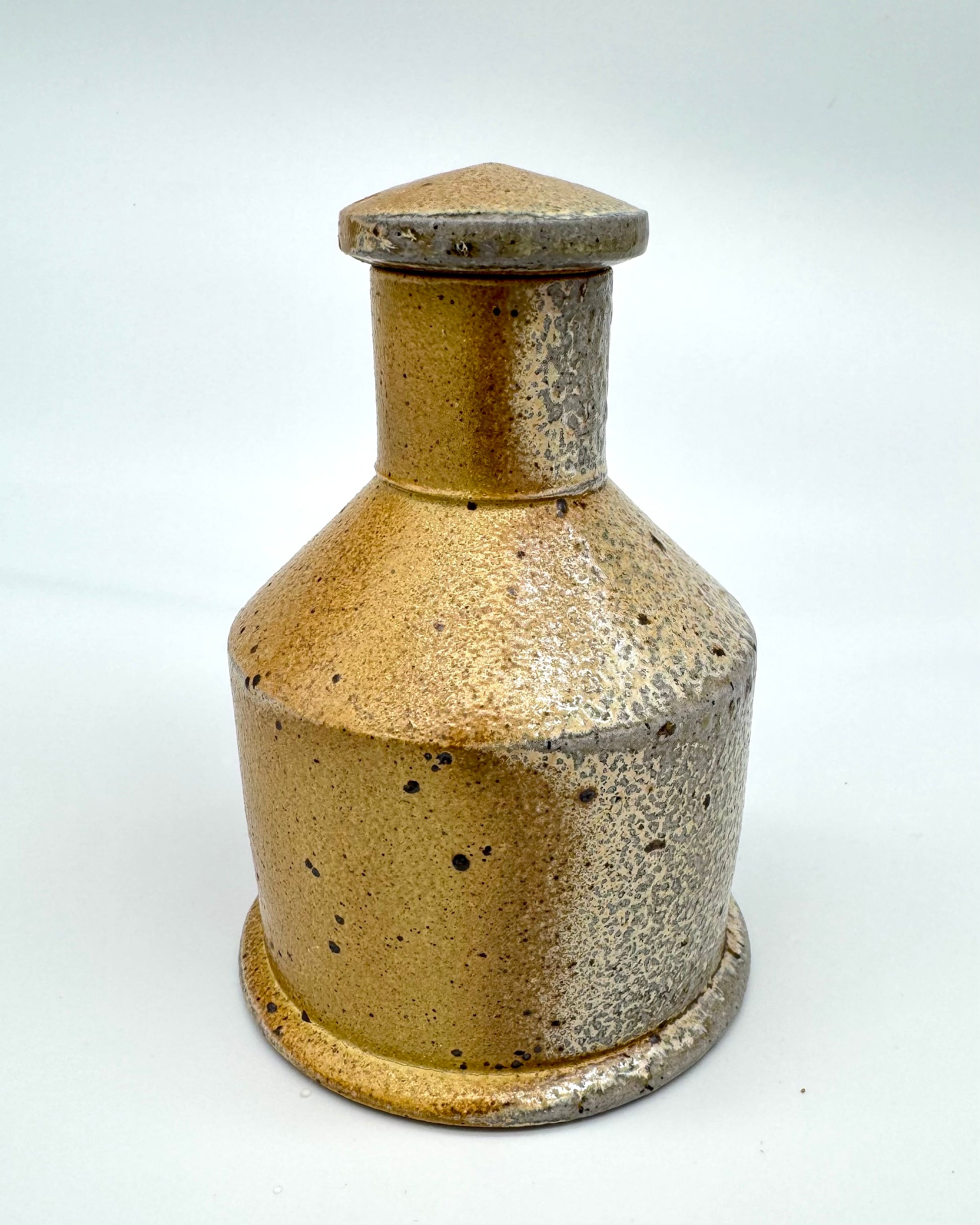 A stylish and useful way to decant soy sauce or tamari at the dinner table. Hold the lid down with your index finger and pour toward the diamond indent on the top for the lid. The soy sauce comes out in a fine stream and cuts off clean when you stop pouring. 260ml capacity